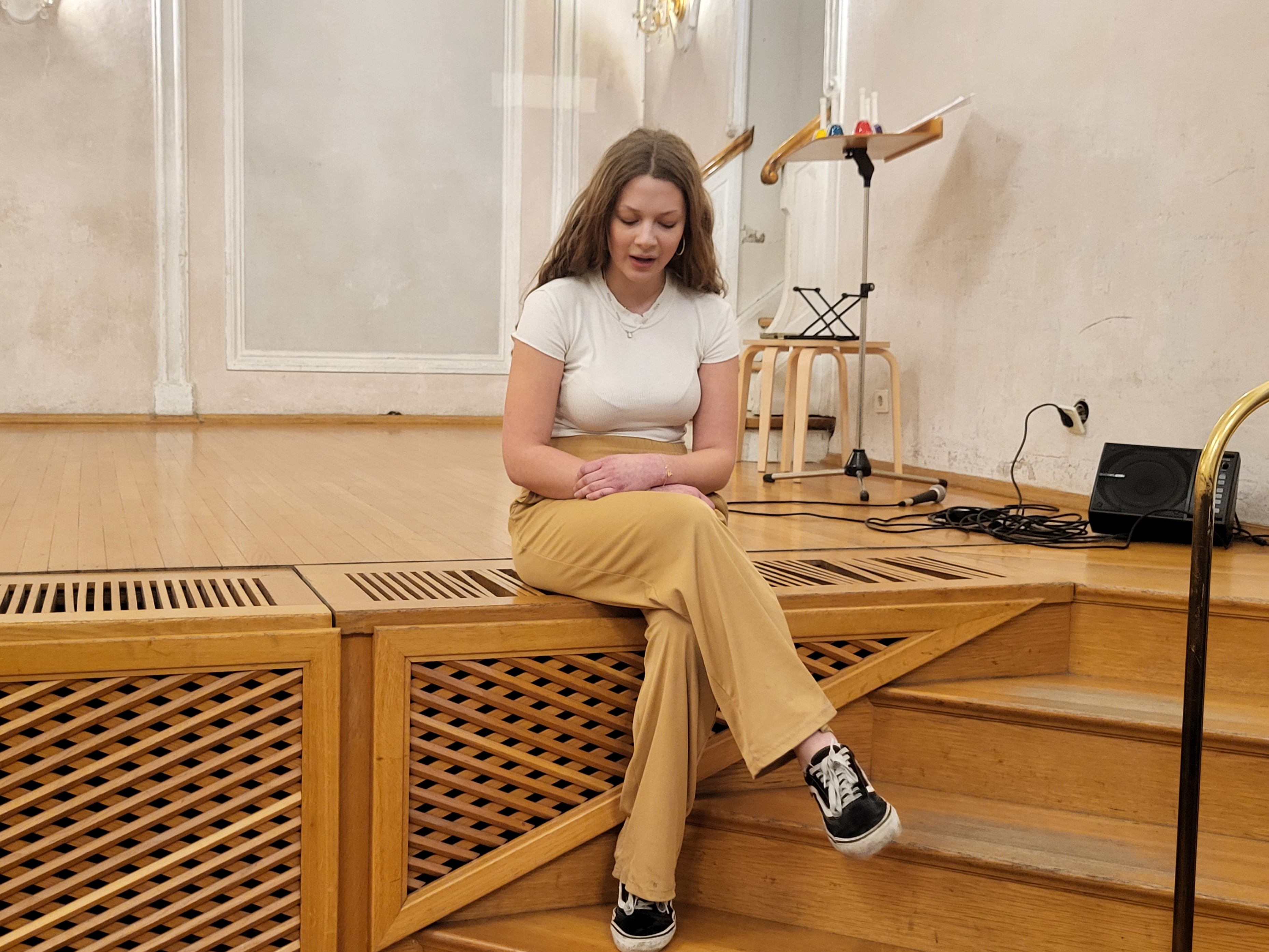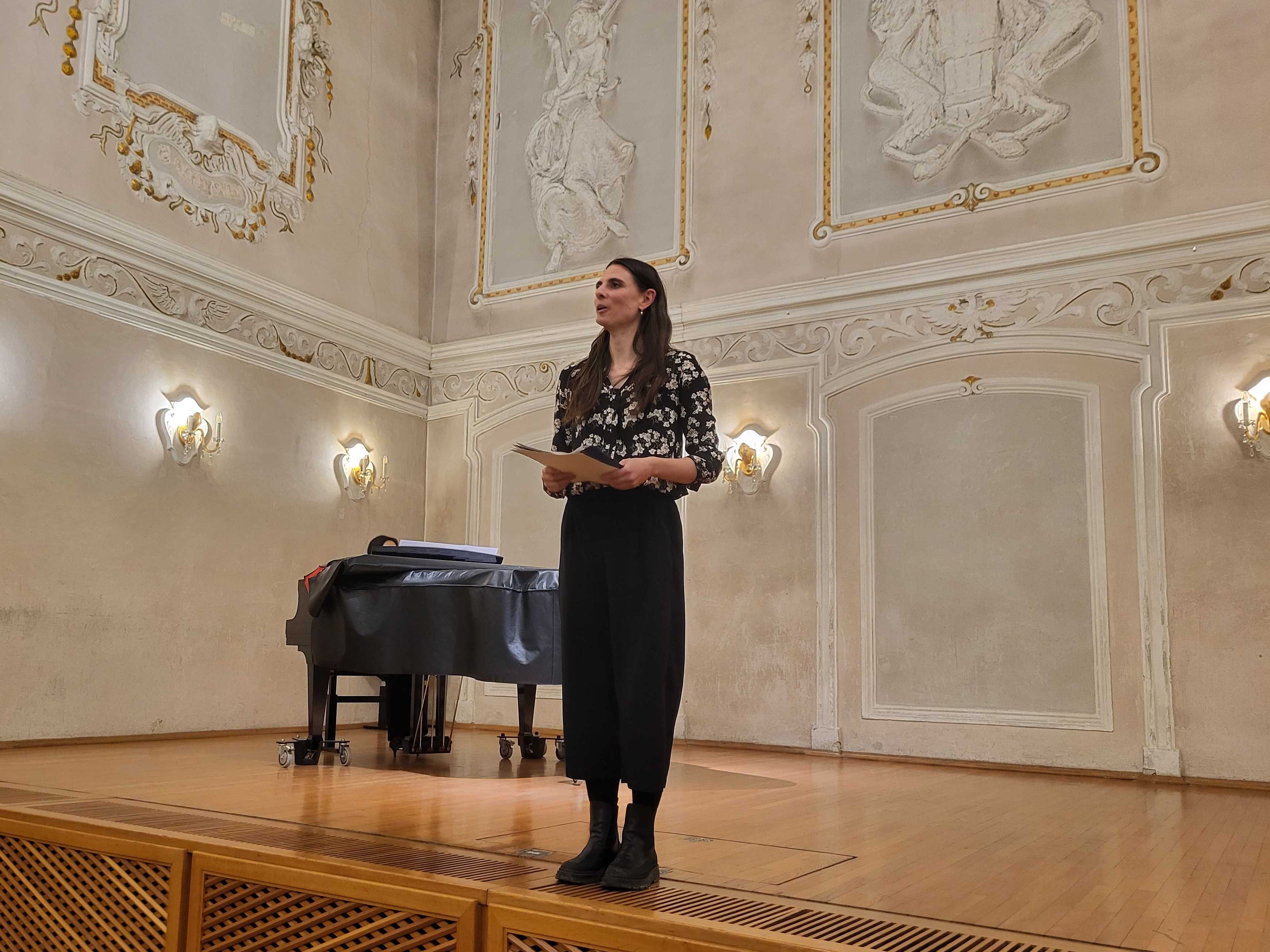 Die Lehrerinnen Katharina Fröch und Nadja Wöss führten durch einen abwechslungsreichen Abend, und die Gesangsschüler:innen konnten, getragen durch die einfühlsame Begleitung von Jungyee Choi am Klavier, Bühnenerfahrung sammeln.